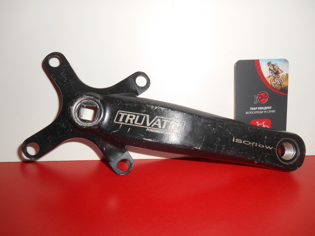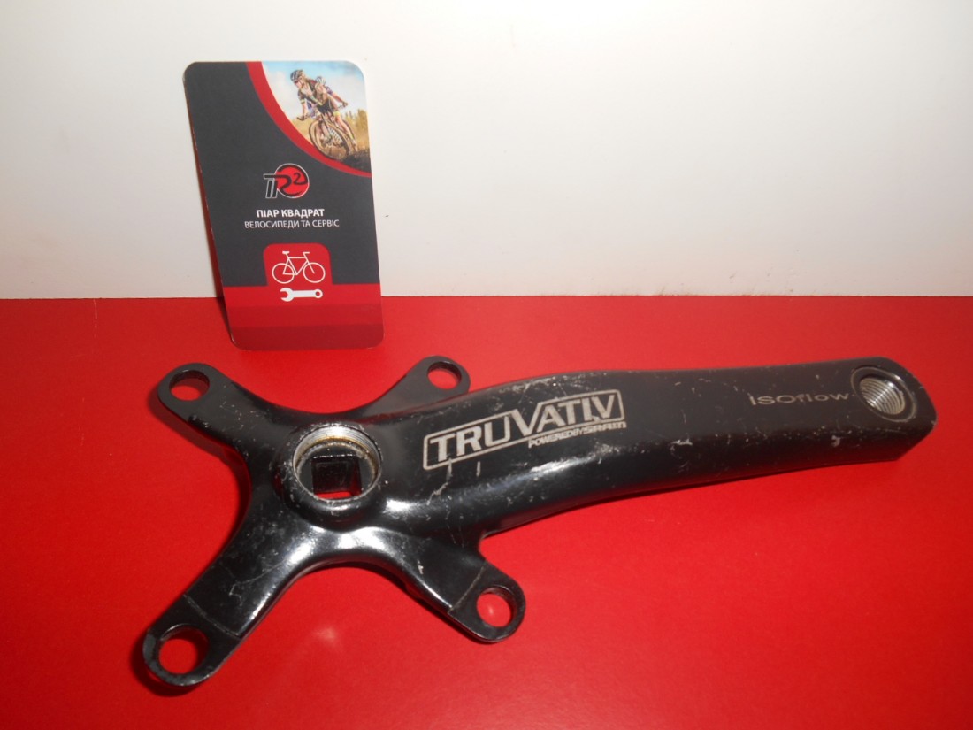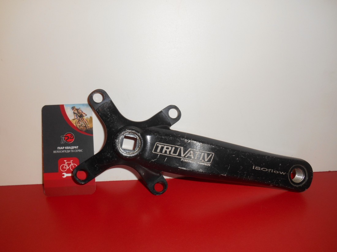 Правий шатун системи Truvativ Isoflow, під квадрат. Довжина ноги - 160 мм. Вага - 283 грами. Можна використовувати як для тріпла, так і для сингла. Продаж без бонок. Приєднання до каретки під квадрат. Має потертості від зберігання. Без дефектів. Виготовлений в Тайвані.