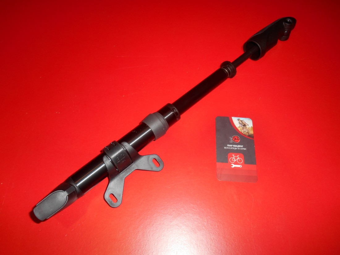 Насос SKS Injex t-zoom black. Колір чорно-сірий. Вага без кріплення - 186 грамів. Вага - 200 грамів разом з кріпленням на раму. Довжина - 260 мм. Для ніпелів Шредера і Преста. Кріплення для рами в комплекті. Максимально вкачує 144 psi (фунтів на квадратний дюйм) або 10 атмосфер - бар. Має Т-ручку, також телескопічний. Виготовлений в Німеччині - оригінал.