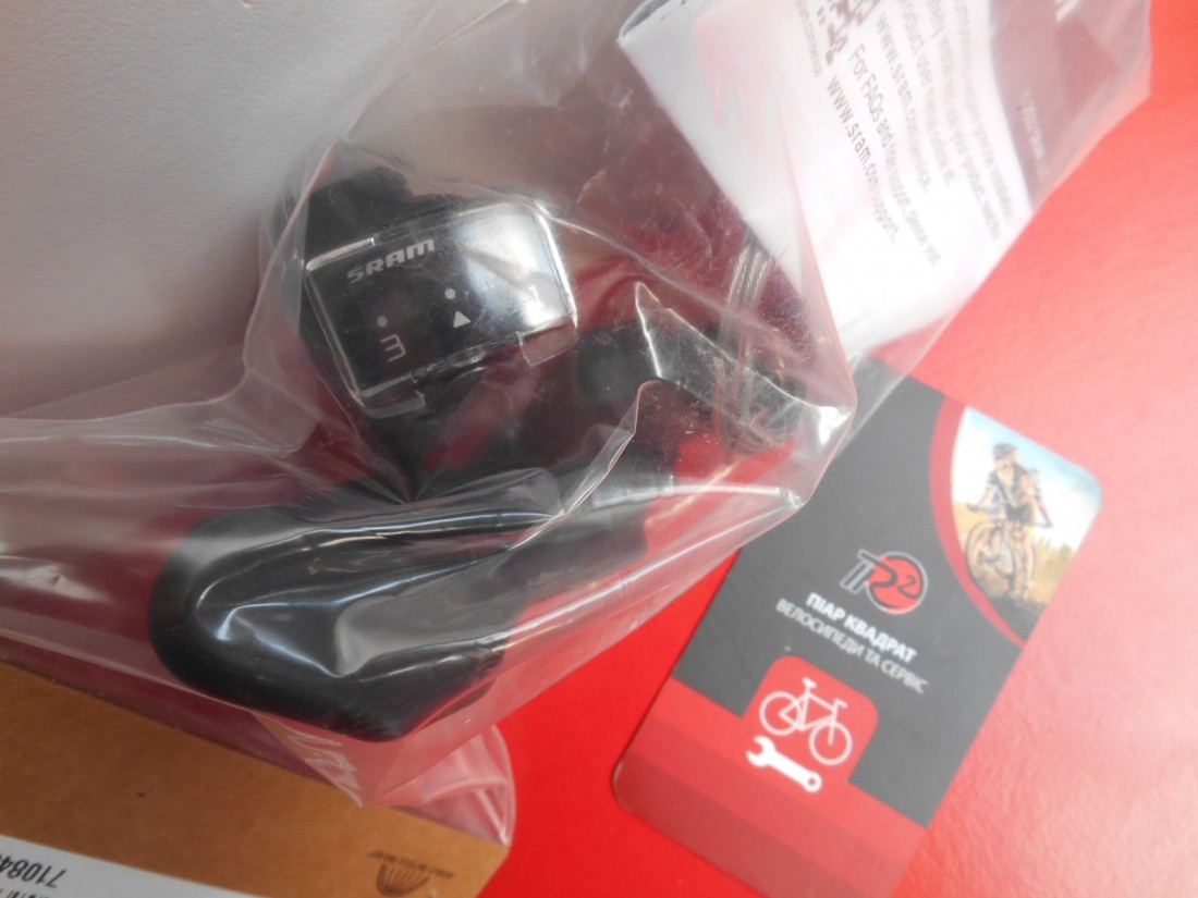 Ліва трігерна манетка SRAM X3, X4 з тросом, важільна з індикатором. Для 3 швидкостей. Вага - 135 грамів. Оригінал. Виготовлена в Тайвані.