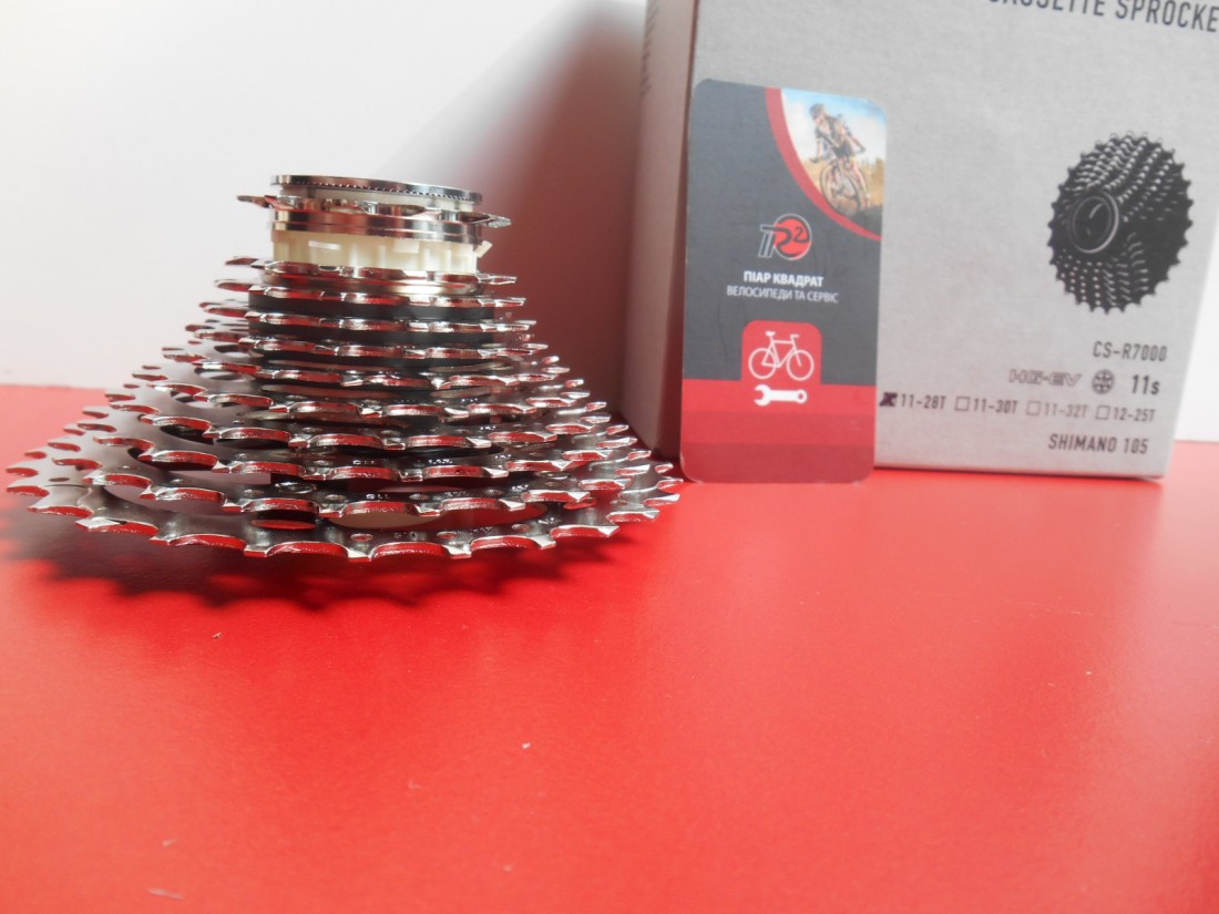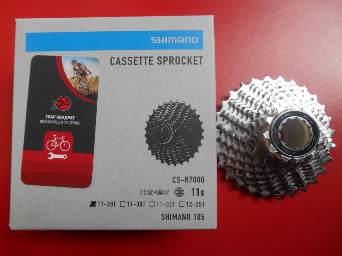 Касета шосейна Shimano 105 CS-R7000 11 швидкостей, з розкладкою 11-28 зубів (11-12-13-14-15-17-19-21-23-25-28), для шліцових барабанів типу - HG L (Shimano 11-12 швидкостей для шосе). Матеріал - сталь, алюміній. Вага - 282 грами. Виготовлена в Японії.