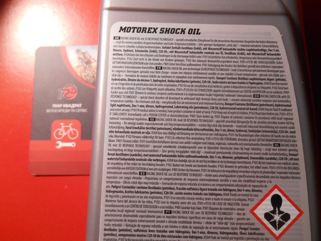 Амортизаційне мастило (олива) Motorex Racing максимально знижує тертя, покращує крутний моменту зриву (зрушення, заїдання-ковзання). Розроблене для високотемпературних навантажень, має низьке піноутворення. Швидко відділяє (позбувається) повітря. Не шкодить гумовим і пластиковим деталям.