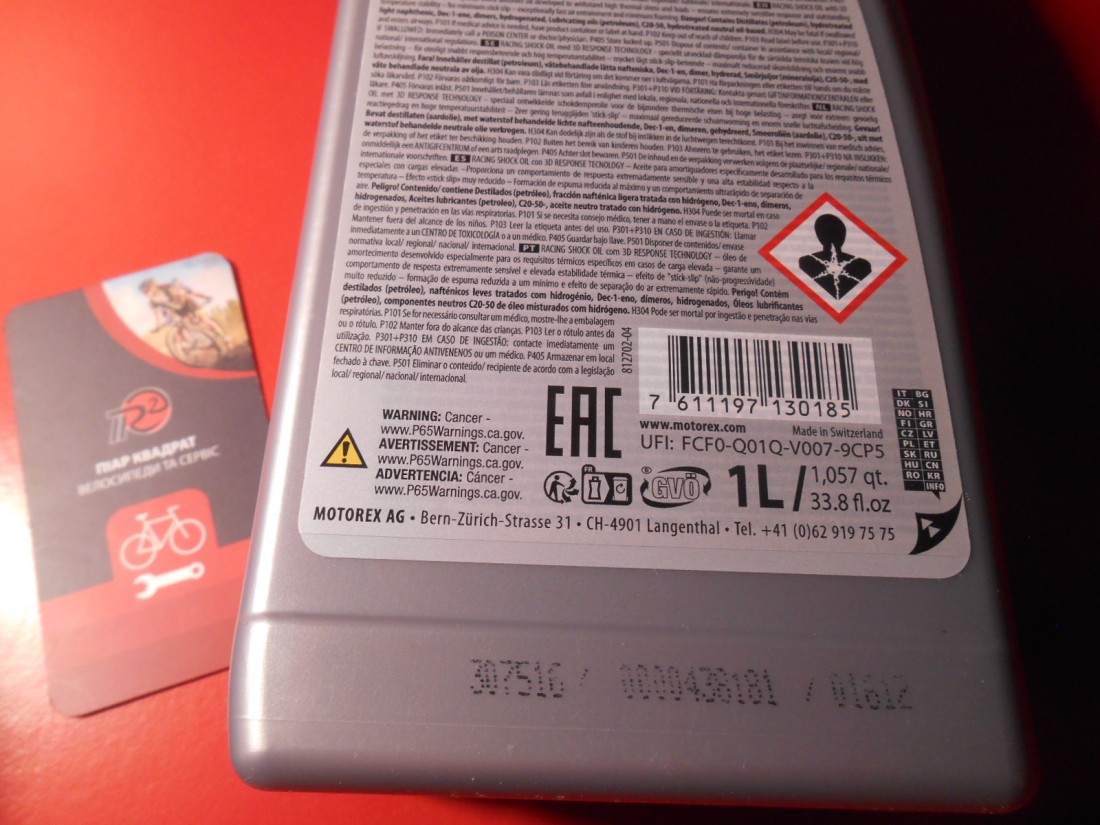 Мастило для амортизаторів і вилок Motorex Racing Shock Oil Damper Oil. Виготовлене в Швейцарії.