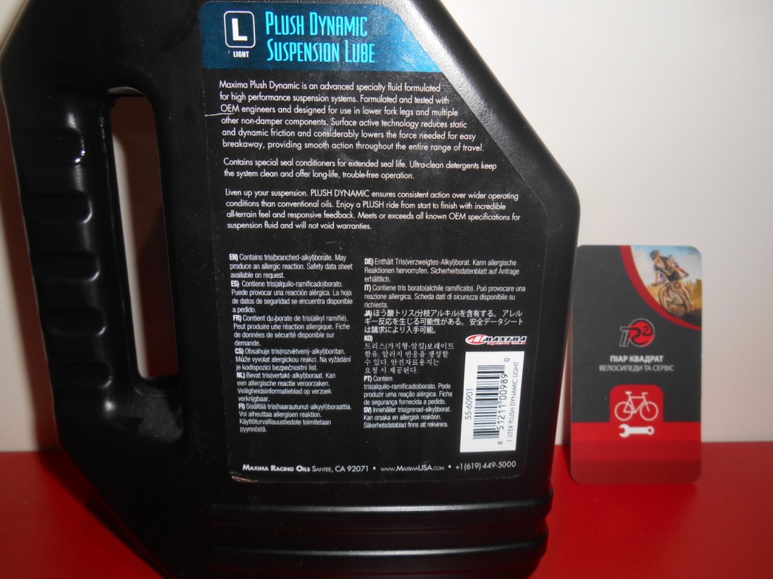 Масло RockShox Maxima Plush Dynamic Light - 100 мл. Має в'язкість 7,5 WT зменшує тертя та забезпечує тривалу, стабільну роботу обладнання. Використовується в амортизаційних вилках, а також у підсідельному штирі Reverb XPLR. Може замінювати собою мастило 0W-30. Виготовлене в США.
