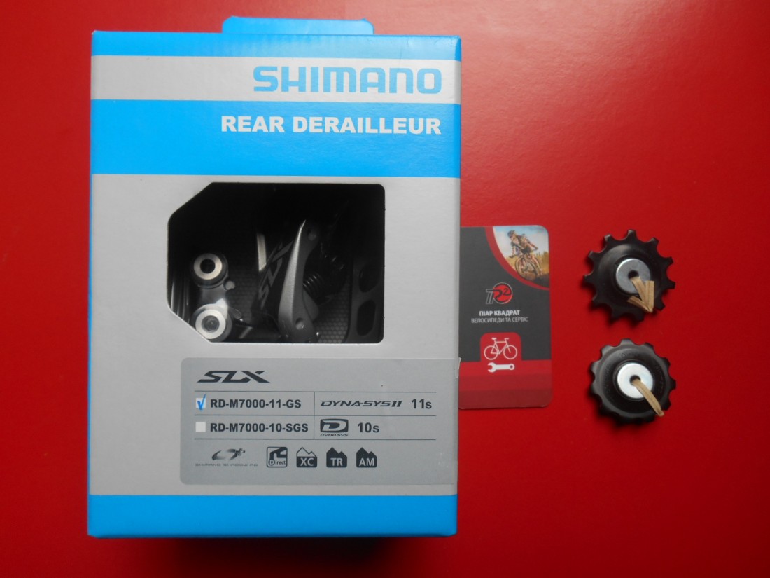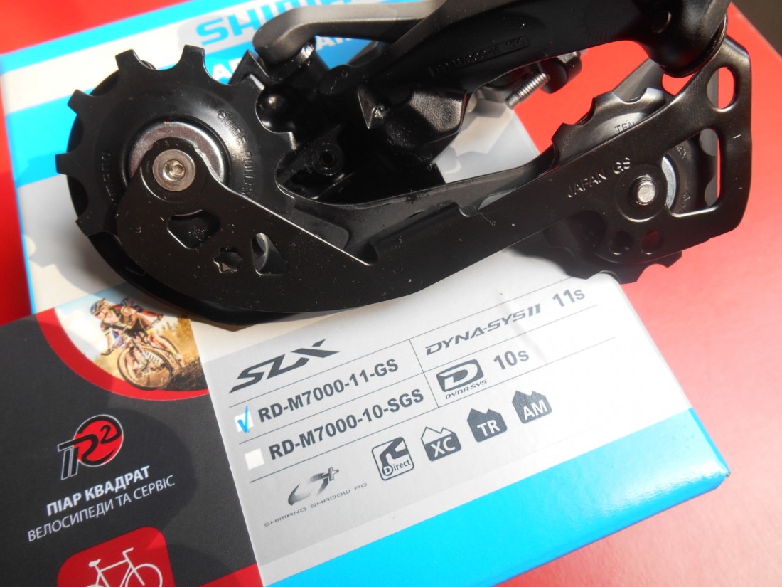 Задній перемикач Shimano Deore SLX RD-M7000 11 GS Shadow Plus для 11 швидкісних трансмісій. Колір чорний. Лапка довга - GS - працює з зірками від 10 до 46 зубців. Сфера застосування - MTB, Trail та All-Mountain. Вага - 326 грамів.  Виготовлений в Японії.