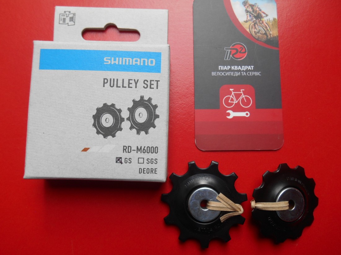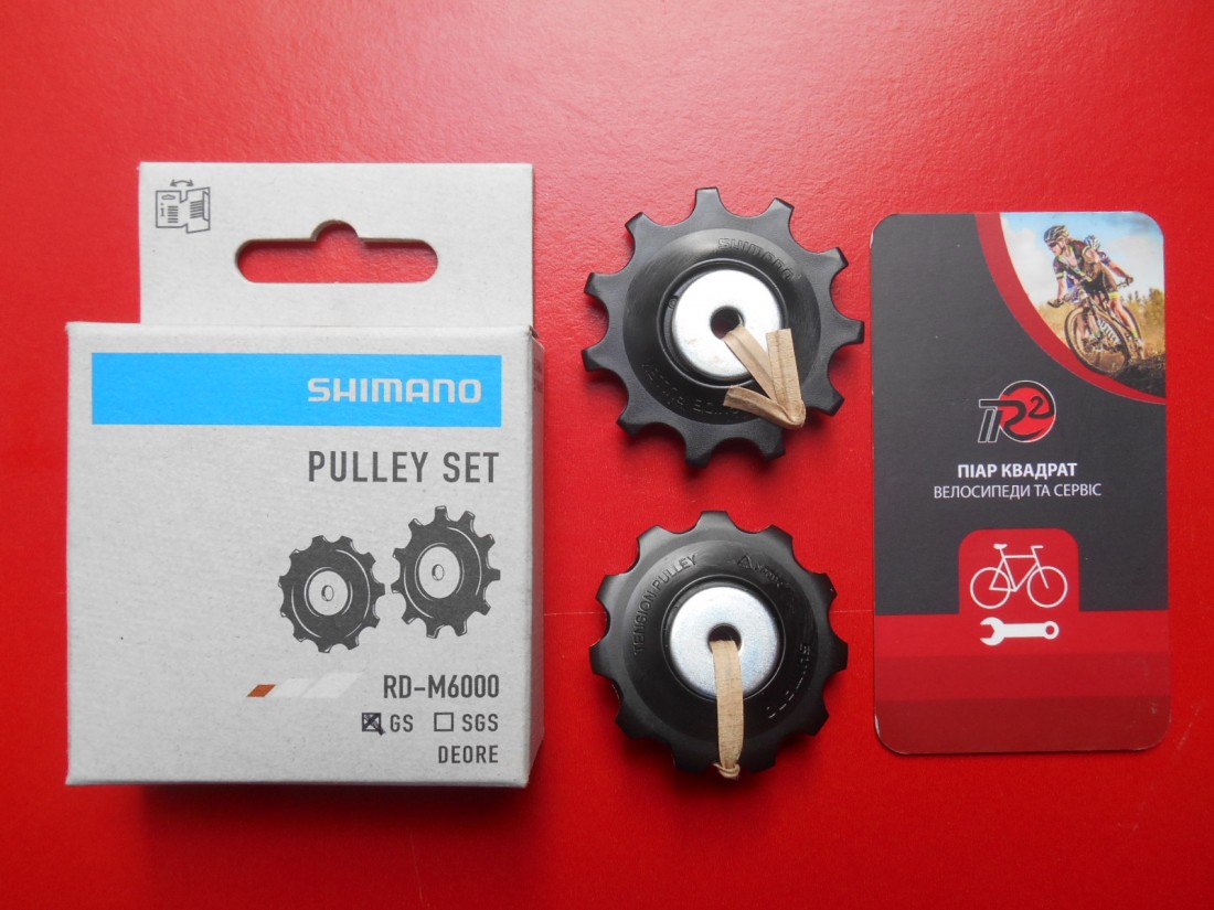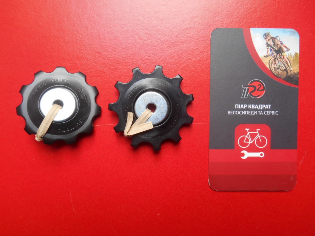 Комплект роликів для Shimano Deore M6000 GS - M7000 SLX 11 зубців. Для короткої лапки GS (95 мм відстань між осями роликів). Ролики відрізняються між собою - верхній має високі зубці. Вага - 20 грамів. Виготовлені в Японії.