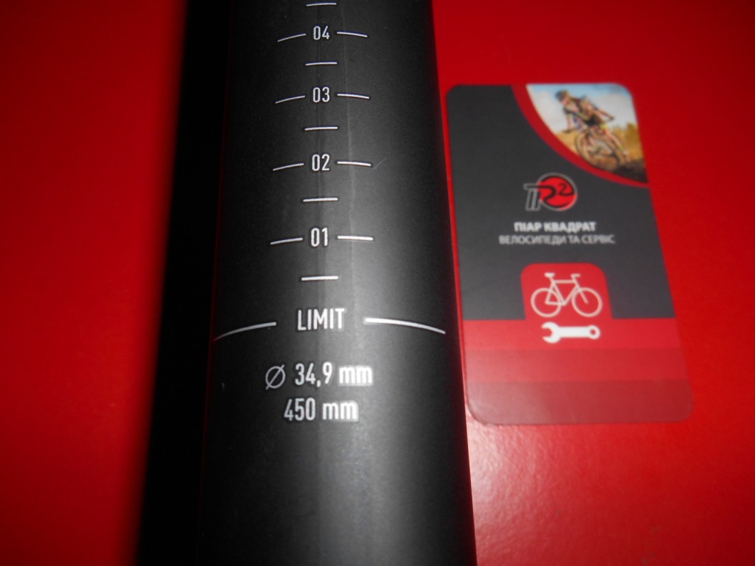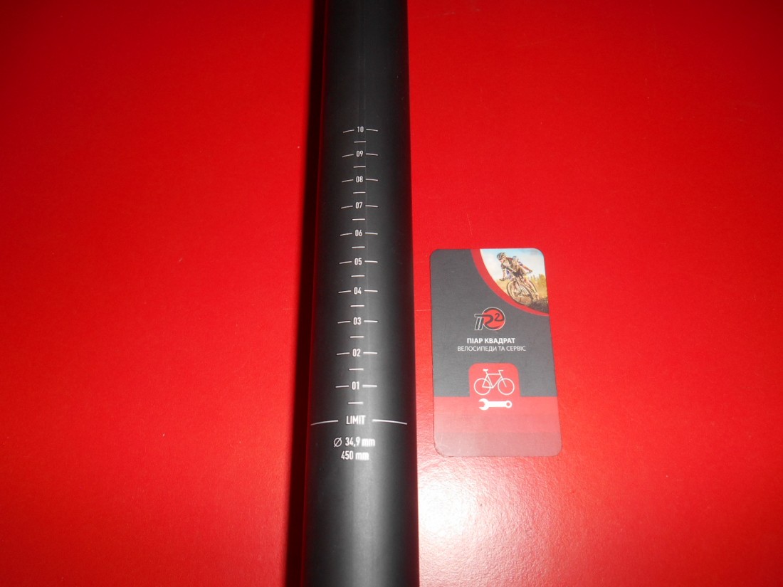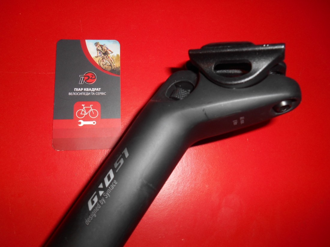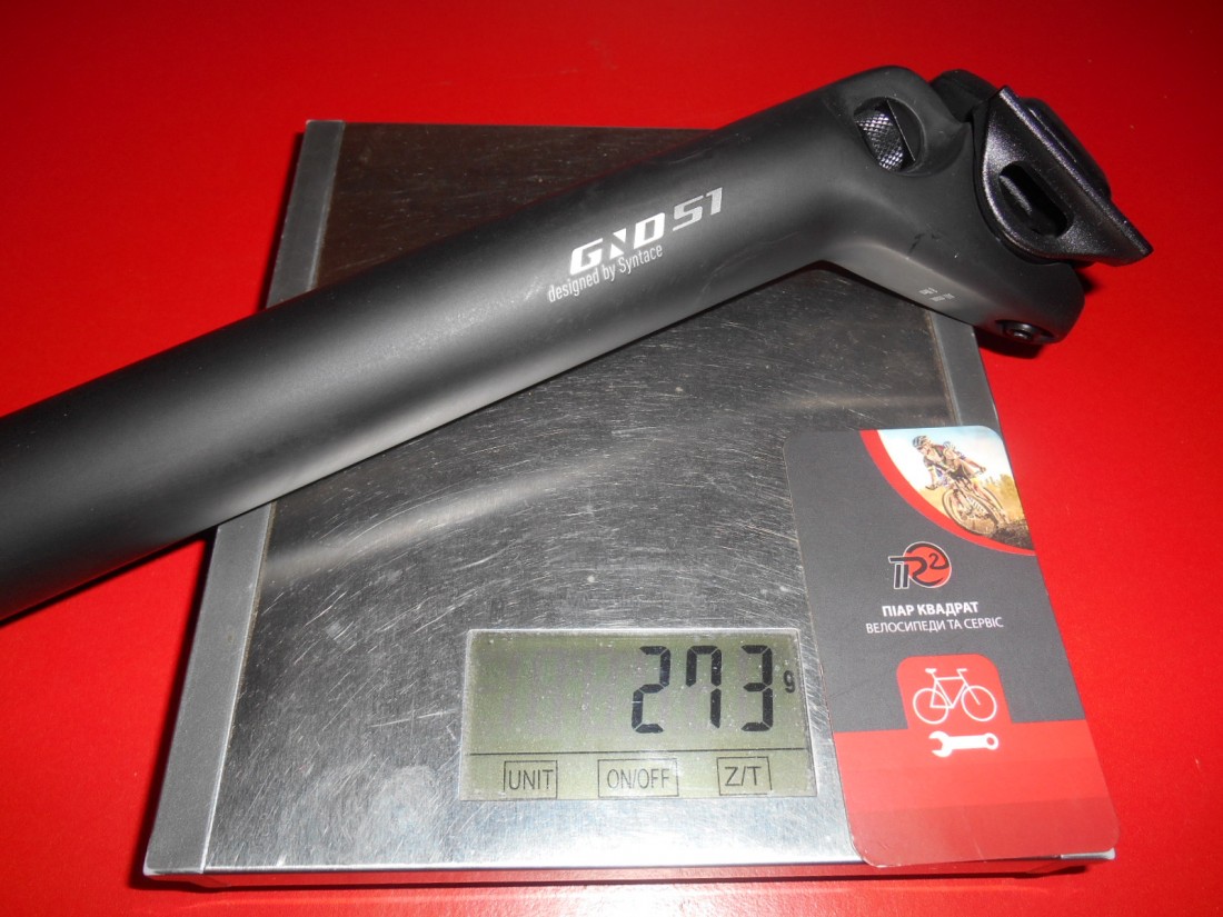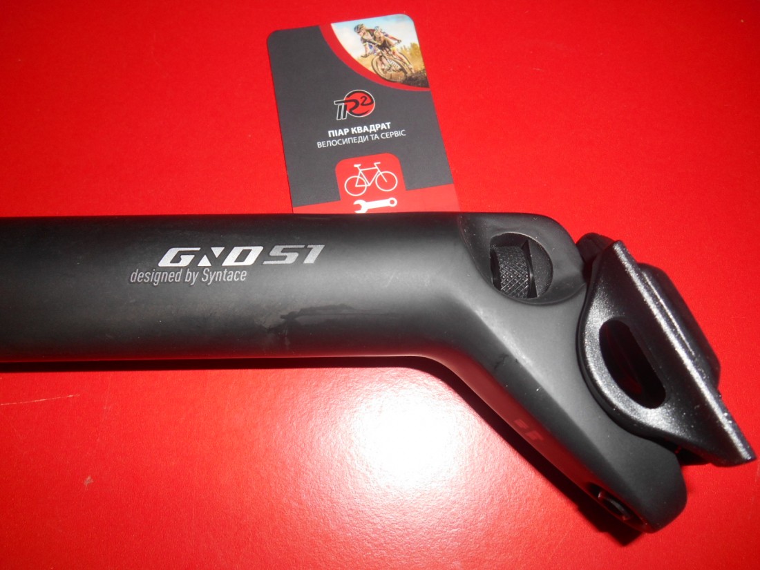 Карбонова підсідельна труба Syntace 34,9 мм діаметром. Довжиною - 450 мм. Вага - 273 грами. Має довгу опорну поверхню до рами, до точки ліміту підйому. Великий діапазон кутів нахилу з точним регулюванням. Верхнє кріплення для рейок сідла - алюмінієве.Виготовлена в Тайвані.