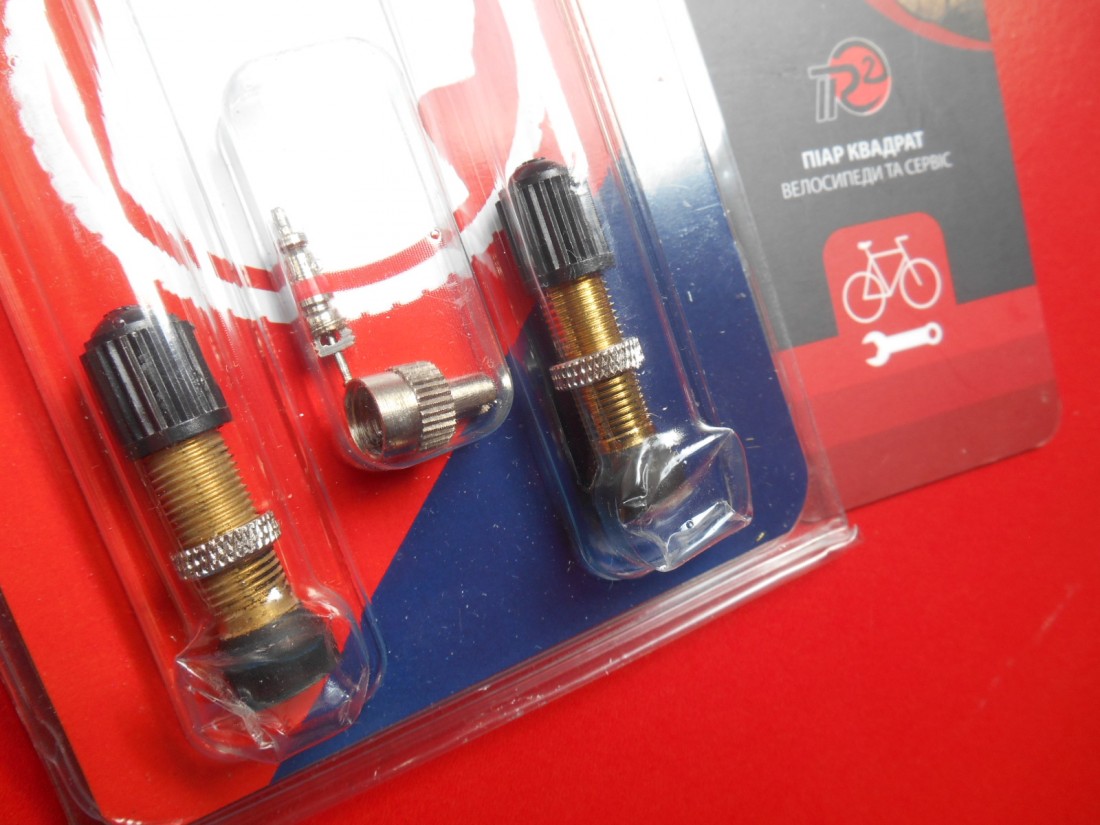 Комплект 2 ніпелів Joes No Flats Tubeless valves. Тип ніпеля - Шредер - Schrader - автомобільний. Для ободів з широким або розсвердленим отвором 8,5 мм, або не щільним Преста (6,5 мм) - для конвертації на Шредер. В комплекті ключ для демонтажа сердечника для наливання або доливання герметика всередину замонтованої покришки.