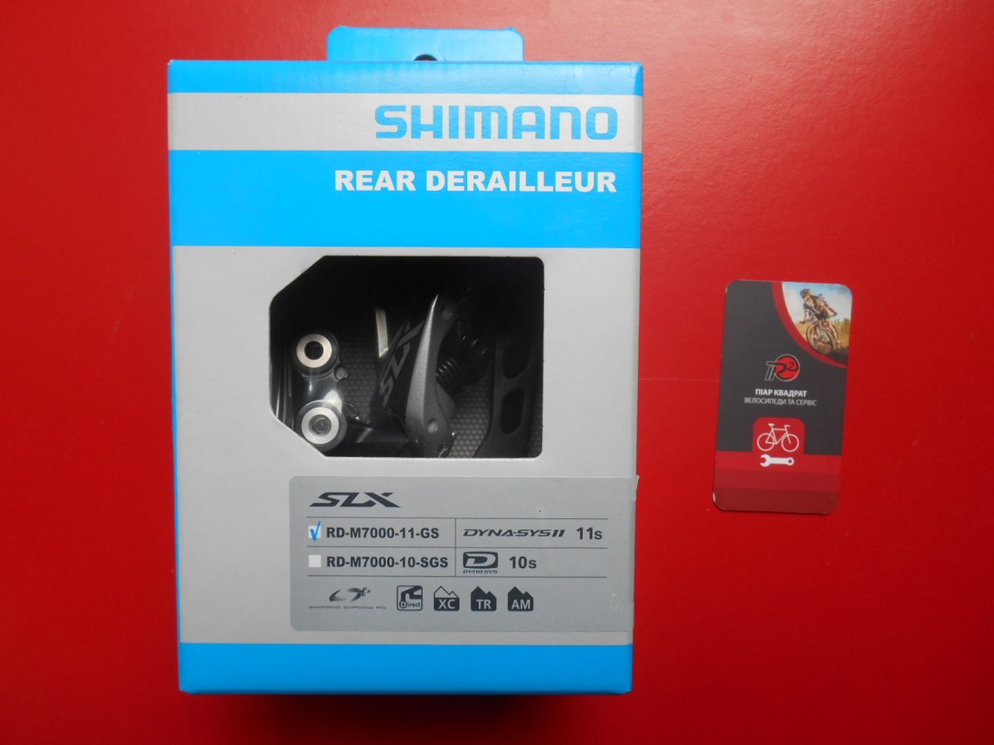 Задній перемикач Shimano Deore SLX RD-M7000 11 GS Shadow Plus для 11 швидкісних трансмісій. Колір чорний. Лапка довга - GS - працює з зірками від 10 до 46 зубців. Сфера застосування - MTB, Trail та All-Mountain. Вага - 326 грамів. Виготовлений в Японії.