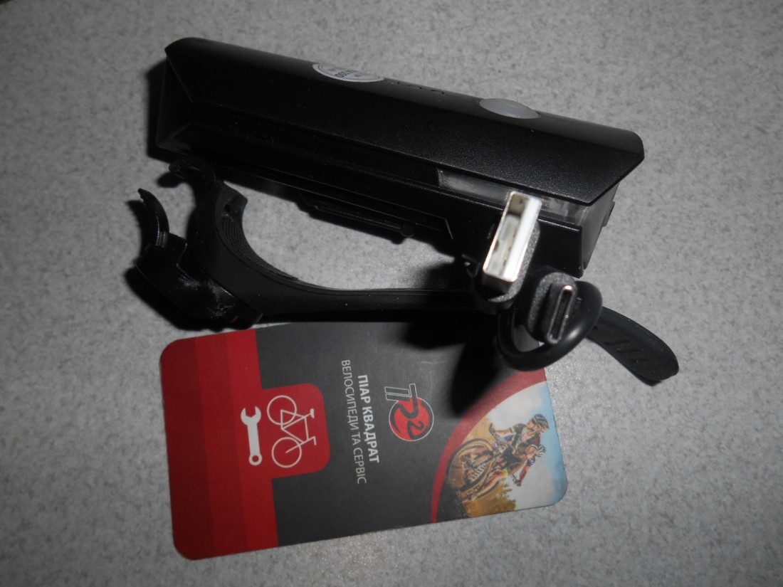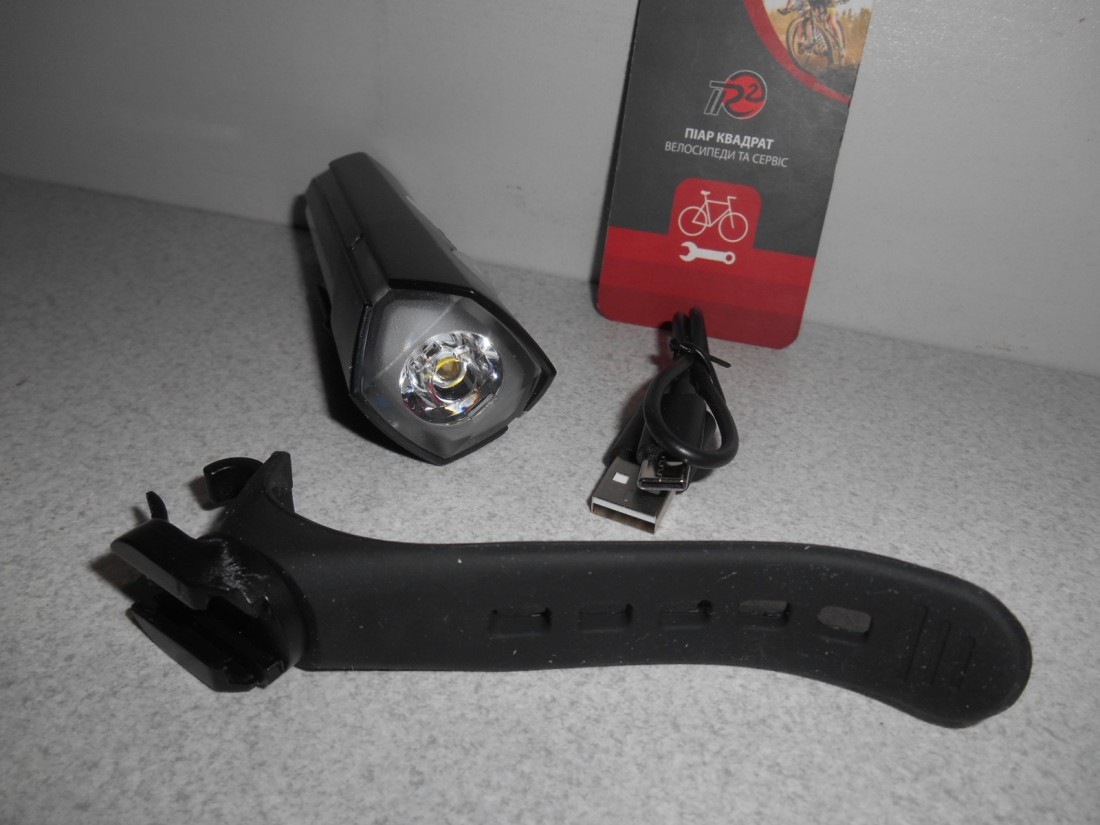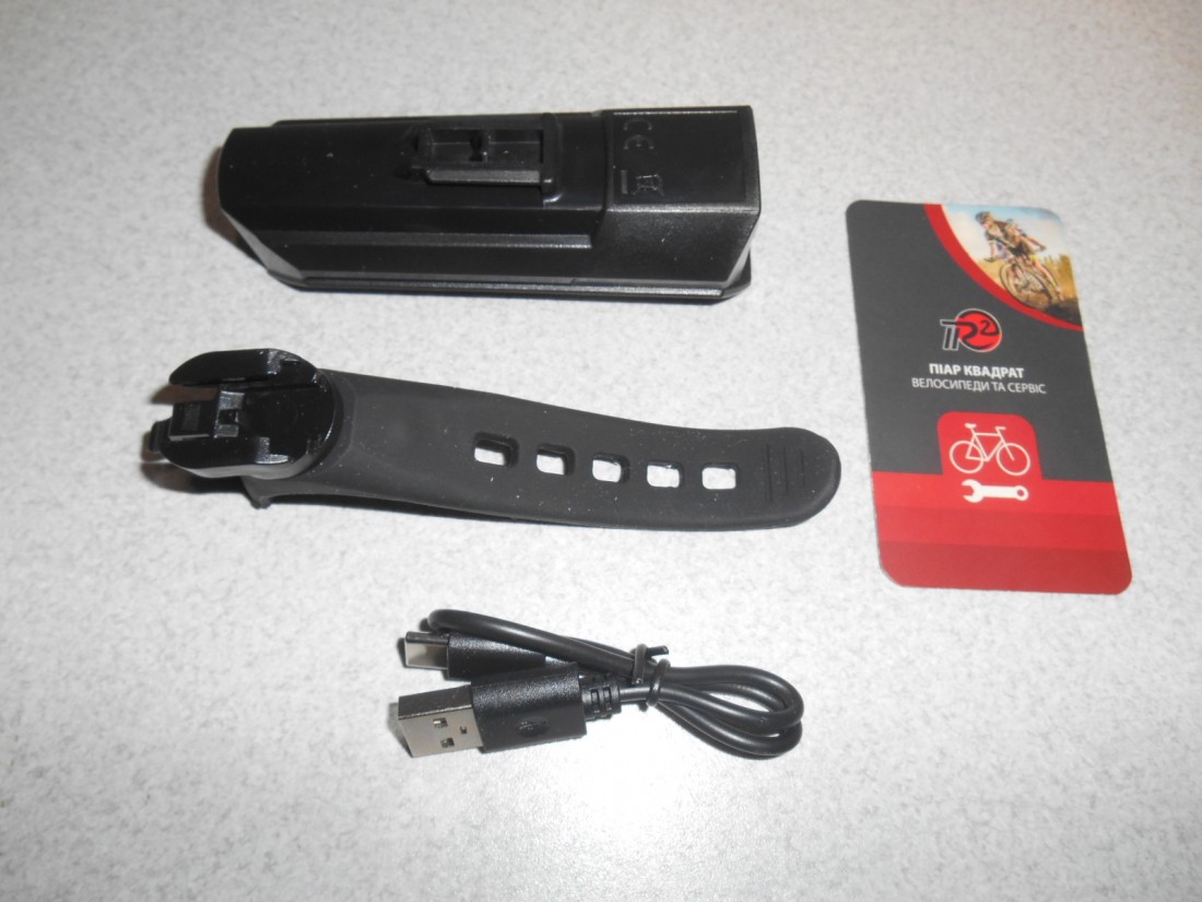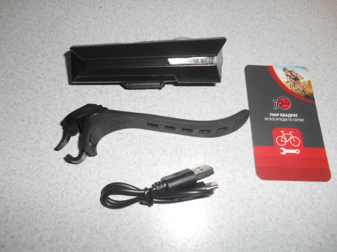 Велофара Onride Rock 550. Колір чорний з написом. Матеріал корпуса - ударостійкий пластик. Елемент живлення - Li-Ion акумулятор 1800 мАг. Заряджання USB Type-Сн. Має індикатор заряду батареї. 5 режимів свічення - 3 постійного світла, 2 режими блимання. Час роботи від 1 до 9,5 годин. Кріплення швидкоз"ємне - гумовий хомут. Для вмикання і вимикання - натиснути і утримувати кнопку тривалістю більше секунди, перемикання режимів - звичайне клацання. Вага - 108 грамів. Світловий потік - 550 люмен.