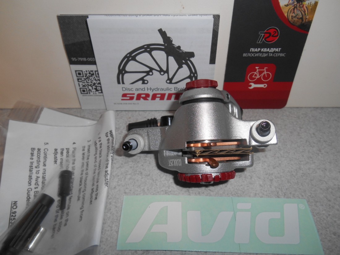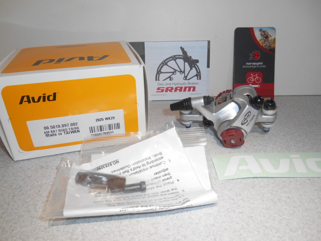 Каліпер механічних гальм Avid BB7 Road. Оригінал в рідній коробці ! Тип кріплення до рами / вилки - Post Mount 160 мм, встановлюється універсально переднім або заднім. Каліпер двопоршневий. Сфера застосування - гравел, місто, побут, шосе, туризм. Колодки - sintered (спечені) на мідній підкладці. Колір корпуса каліпера - глянцевий графіт. Всі тавра на корпусі присутні, пильники присутні, натягувальний болт в конструкції присутній (так і наклейка " AVID" теж в комплекті). Регулювання внутрішнього болта підведення колодки - під Torx 25 зірочка. Користуюся такими каліперами особисто вже 15 років, не псується, не кородує, не іржавіє - гегко розбирається і піддається профілактиці. Рекомендую використовувати в майбутньому лише оригінальні колодки - в цьому випадку завжди буде інформативне первинне відчуття контролю зусиль. Вага каліпера з колодками в зборі в оригінальному вигляді з болтами - 205 грамів. Виготовлений в Тайвані.